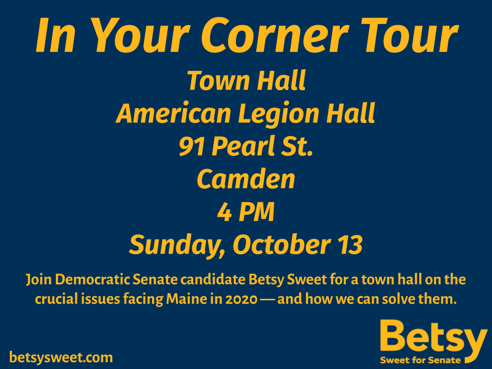 Tomorrow! Join us at the American Legion Hall in Camden for the latest stop on our #InYourCorner Tour — 4 PM at 91 Pearl St.pic.twitter.com/Fjv0xm65tZ