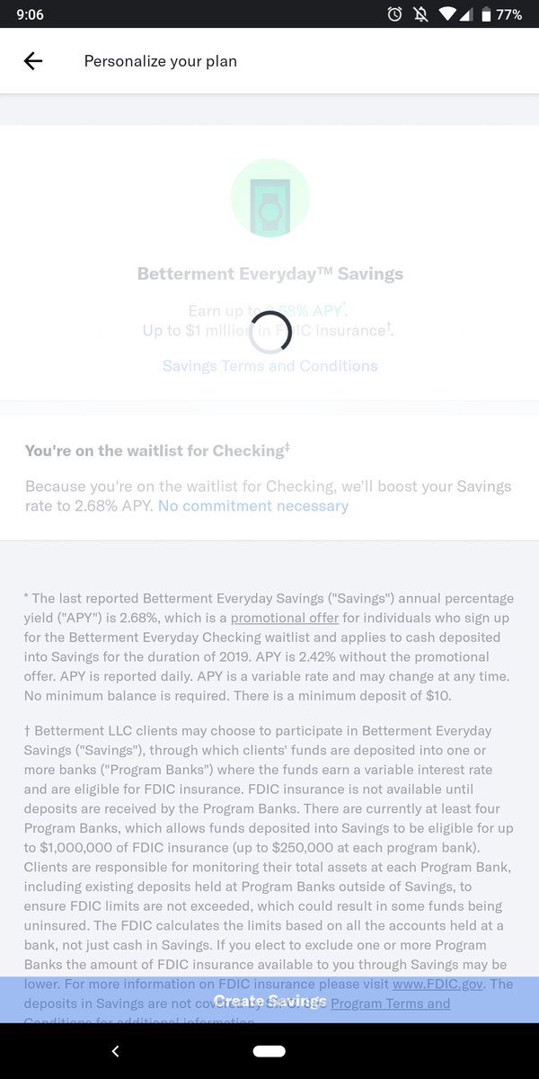 @BettermentHelp when I tried signing up for an Everyday Savings account tonight, I see a loading spinner, and then nothing happens. Tried on my laptop, and then in the mobile app...pic.twitter.com/iAzYMlZnsQ