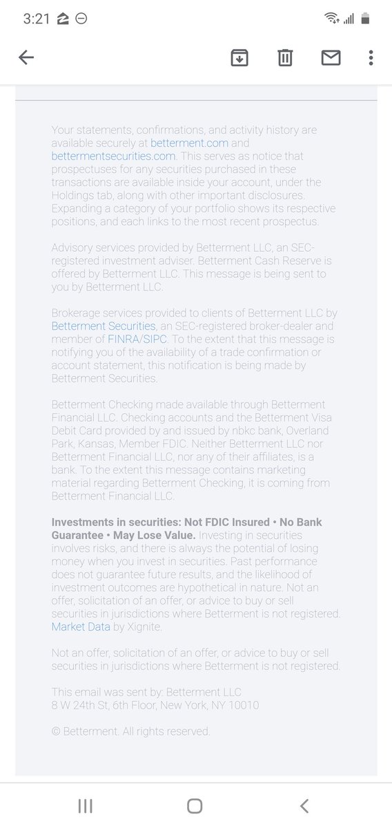 We're here to help answer your questions about Betterment. You can also email us at support@betterment.com. http://bit.ly/BettermentDisclosures …