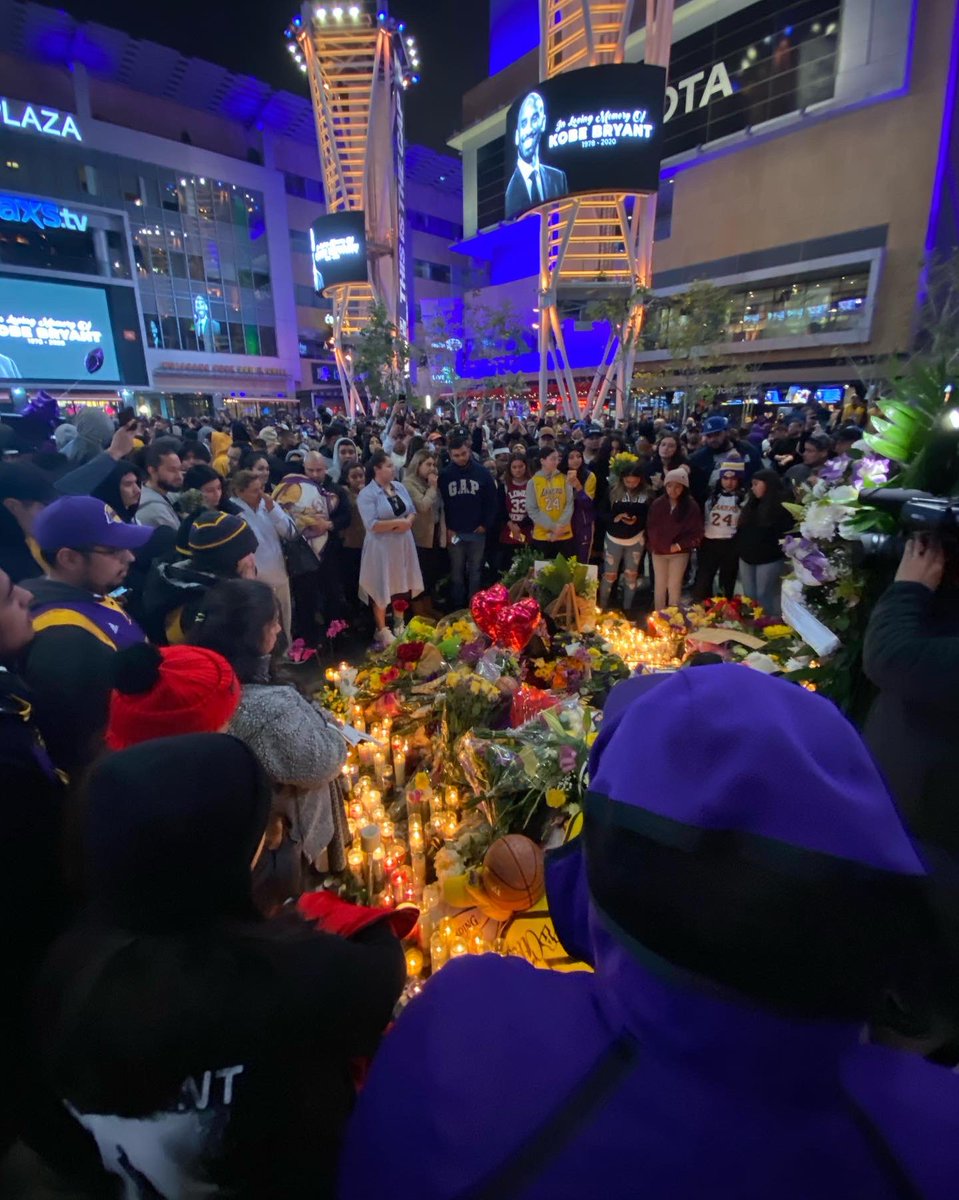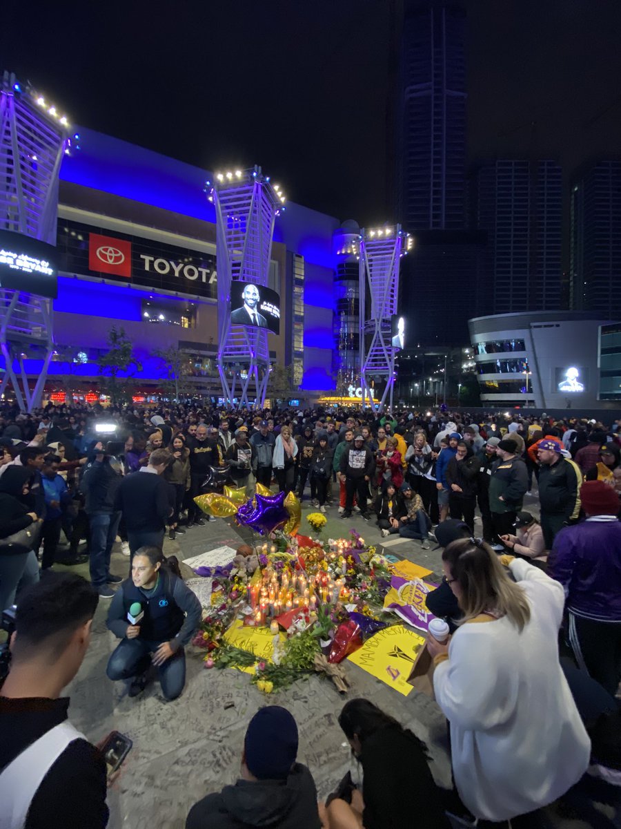 The scene outside Staples Center tonight, broken hearted fans in mourning