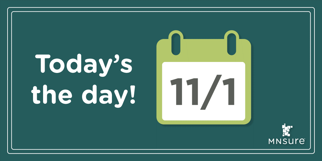 Today’s the day! #Minnesota’s open enrollment begins today and runs until Dec. 23. Don’t miss out on your chance to enroll in health insurance through @MNsure. #GetMNCoveredpic.twitter.com/2t9GyUeNSW