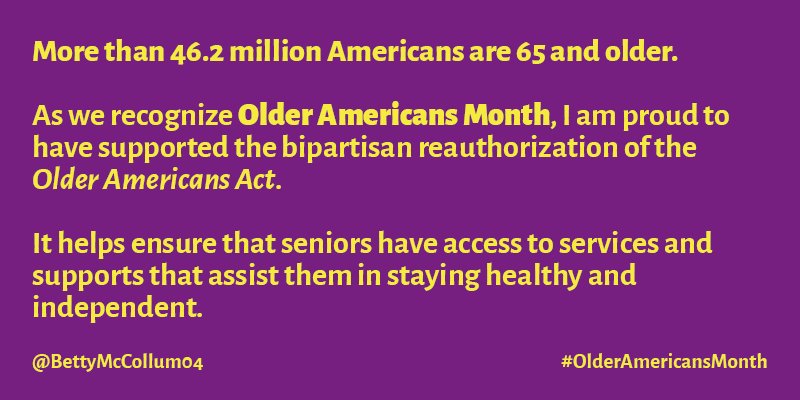 As we recognize #OlderAmericansMonth, proud to have supported bipartisan bill to reauthorize #OAA!pic.twitter.com/ygjGjCwlwm