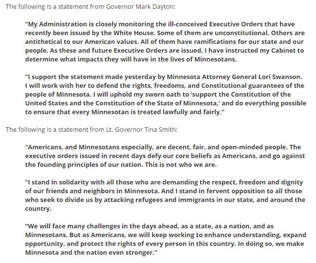 Statements from Governor Mark Dayton and Lt. Governor Tina Smith on Recent Presidential Executive Orders http://mn.gov/governor/newsroom/index.jsp?id=1055-275347 … pic.twitter.com/7wJo78eNxd