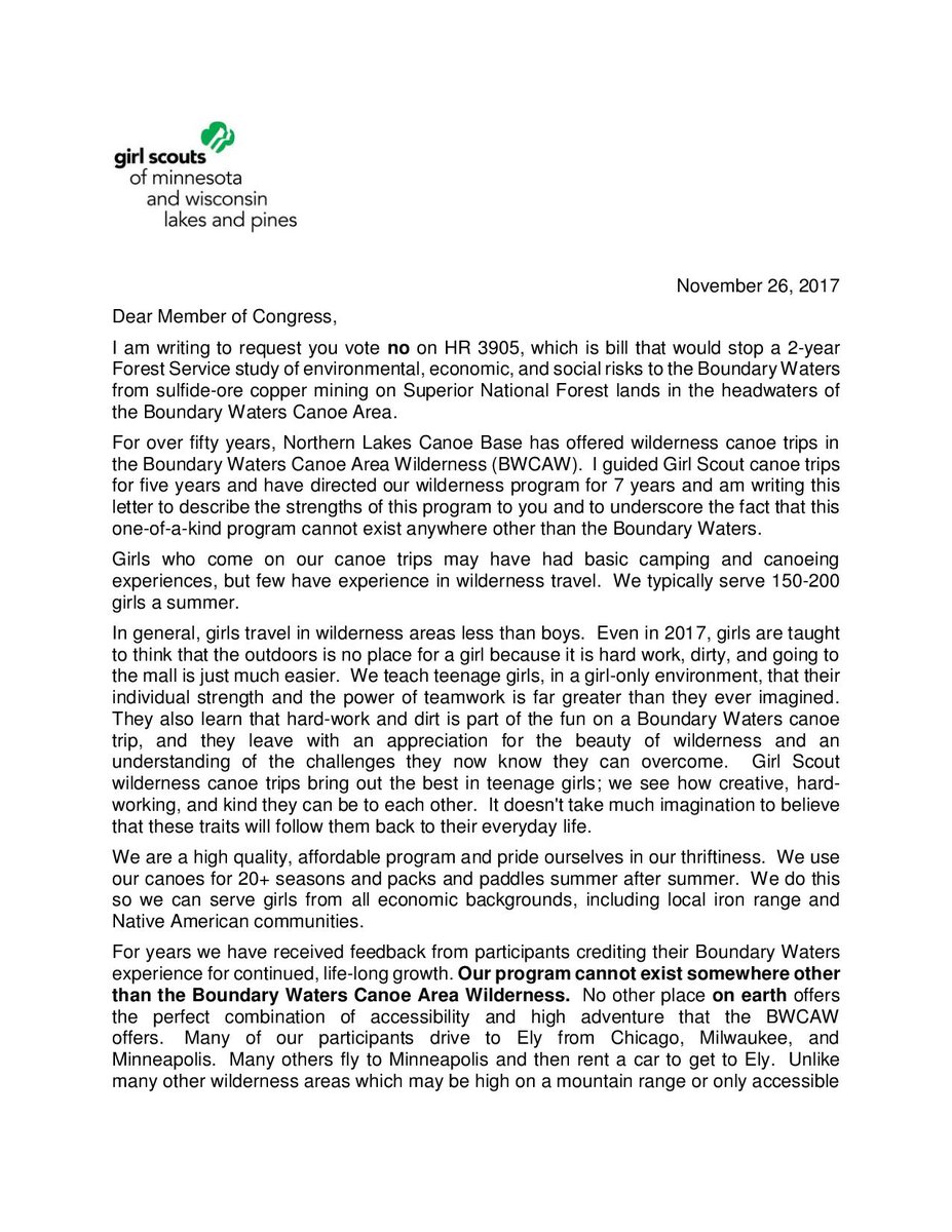 Thank you to the Girl Scouts of @GSMWLP who are speaking out in support of our Boundary Waters and urging Congress to vote NO on H.R. 3905. #SaveTheBWCApic.twitter.com/AyRgo5EjI9