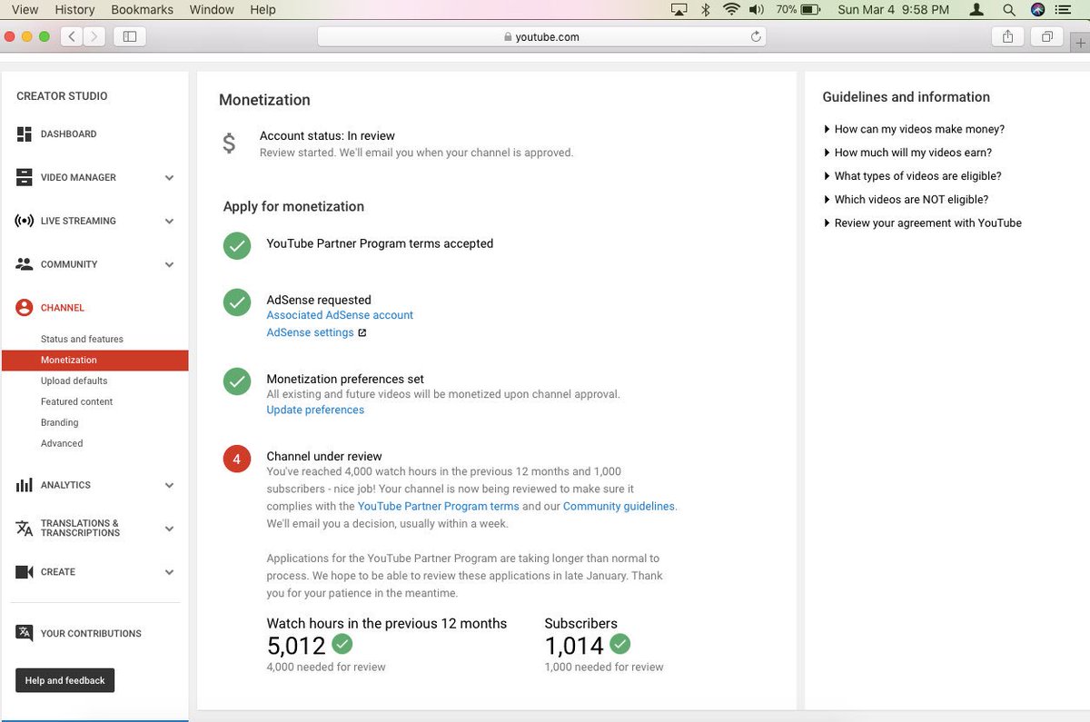 @TeamYouTube I have reached the requirement that YouTube has, and been waiting for my channel to get approved. But, it’s saying that my reviewed will be completed in this coming January 2019. But on the top, it’s saying that my reviewed will be completed within a week.Please Helppic.twitter.com/5hDYno8LXH