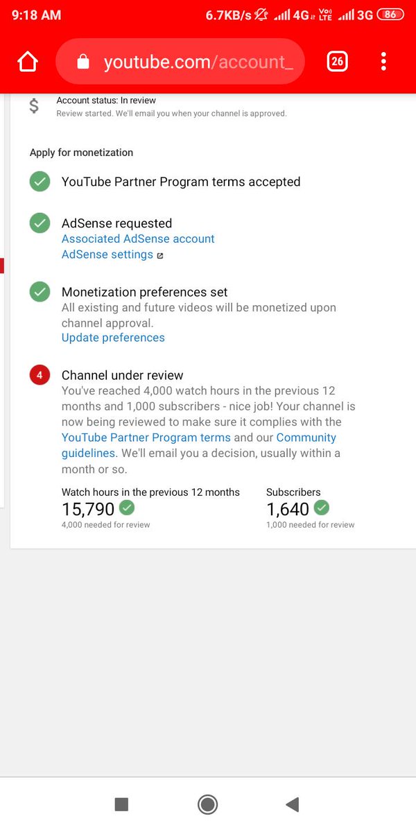 @YouTubeIndia Hello@TeamYouTube My channel is completed the 4K+ hours watch time& 1Kt subscribers in previous 12 Months and still my channel monetization is not enabled plz guide us. https://www.youtube.com/channel/UCBUyYEA8YjWFM_JHTMIKKdQ …pic.twitter.com/cqHDXkcKD9