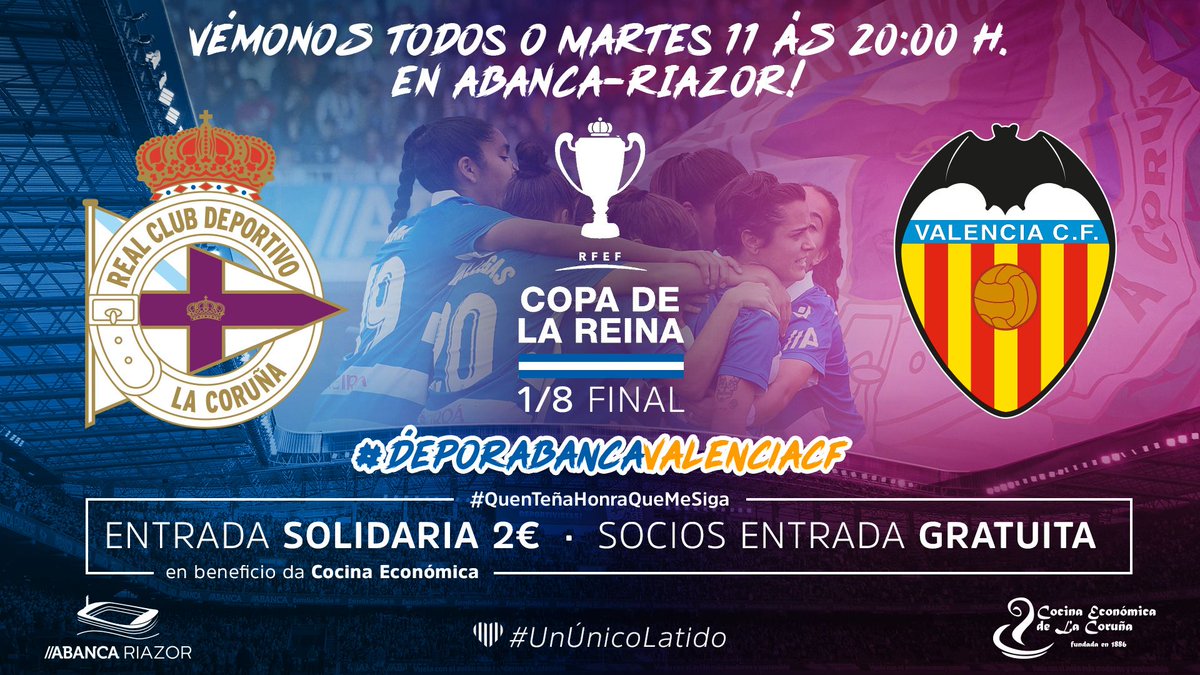 #DEPORTIVISTAS, que a festa non pare en#ANOSACASA. O martes 11 ás 20 h. primeiro partido oficial da historia de#ASNOSAS en#ABANCARIAZOR!#CopaDeLaReina:#DéporABANCAValenciaCF Socios do#DÉPOR: gratis e entradas 2€ a beneficio da Cocina Económica#UnÚnicoLatido n