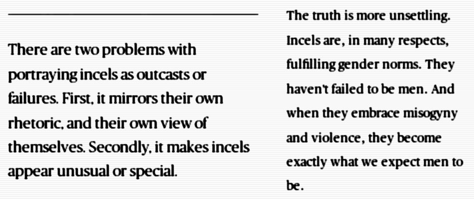 [Berlatsky, Noah. "Don't let 'incel' misogynists like the Toronto killer tell you they're special—I was a virgin until I was 27". NBC News. 29 April 2018.]pic.twitter.com/SdySEZ1m2x