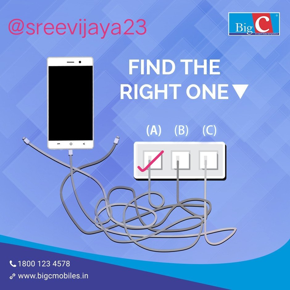 #Fun #Contest..! 😃 Ans) Option A is the right cable that connects to the #SmartPhone!! 📱 #BigCMobiles 💙 #FunContest #ContestAlert #BigCstores #Guess Join Friends..😃 @prasadd203 @aryarr41 @Tsrinivas053 @suman007g @panaond @sandeep984pic.twitter.com/7SoOFleVzH