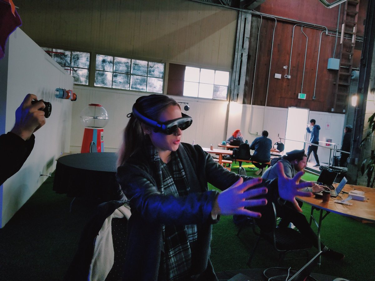 Me, in my natural habitat 💁🏼‍♀️😎 Leapin’ through my data with my #ML1 Thank you @ImmersionXR for the great pics!! @magicleap @ATT #AR #VR #dataviz #magicleap #telecom #BigDataAnalytics @BadVR_Inc pic.twitter.com/H15Kux43ek