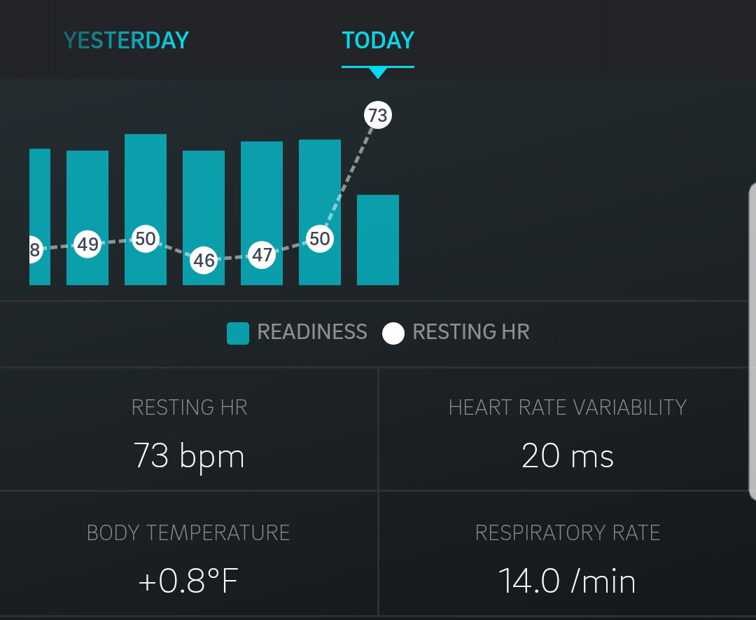 I had a few too many last night and my @ouraring definitely shows it. Heart rate and body temp went way up! I'm rocking a readiness score of 49. @PeterAttiaMD @DominicDAgosti2 pic.twitter.com/2Ikm9hb6L2