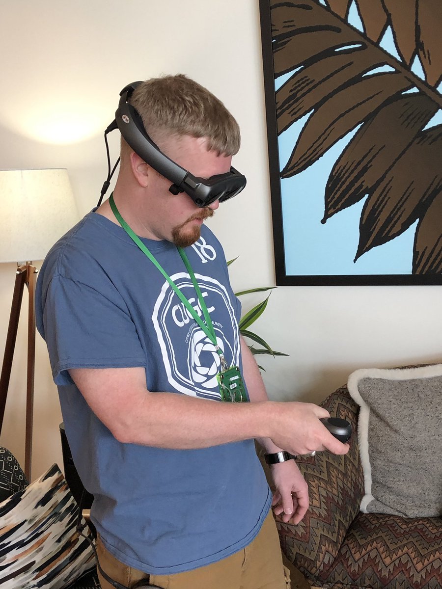 Thanks @chrismatthieu from @magicleap for bringing some glasses! Here are some picture of @VDIHacker playing Angry Birds in #AR pic.twitter.com/Abc1JGHErR