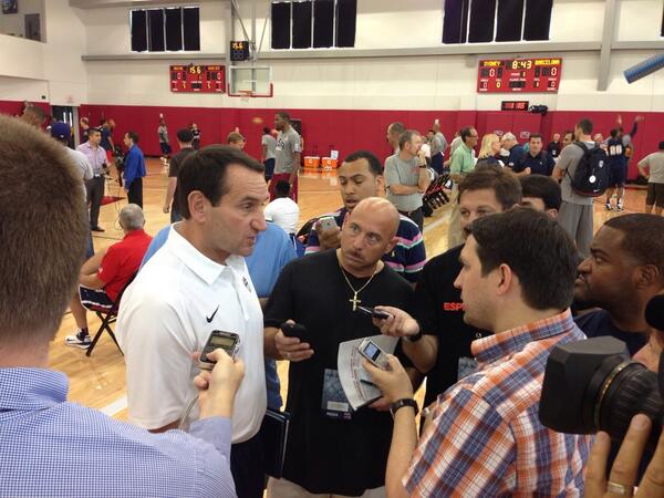 Coach K happy with the announcement of Kevin Durant and Kevin Love playing for US National team in 2014. pic.twitter.com/QucHubrmCs