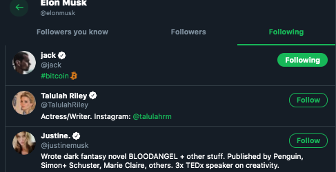 get the sense this was a bot error as his followers are chronological and she is not listed at the top.pic.twitter.com/VKj70UoSvP