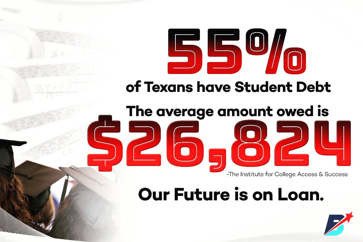I'm in that 55%. Like so many, I still owe thousands of dollars. Maybe it's time to elect someone who understands the problem and is willing to fight for solutions. We're in this together #TX24