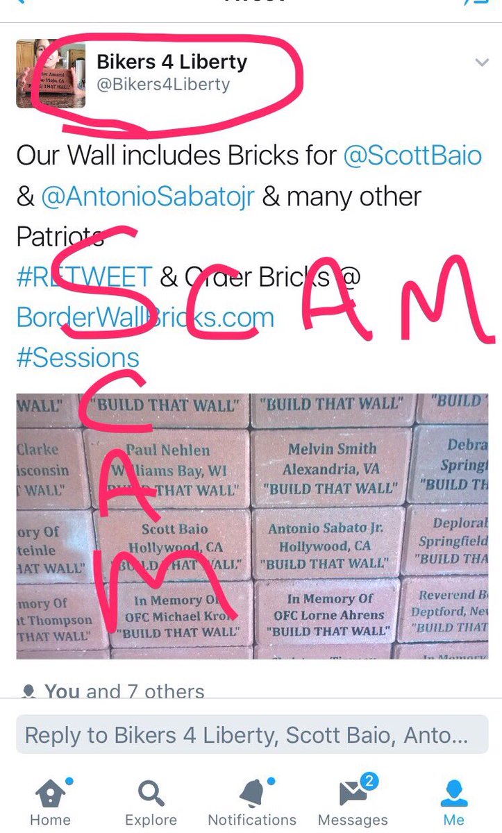 @WeSupport45 is a scam. It's run by@Bikers4Liberty who switched accounts when@pnehlen reminded everyone of their@borderwallbrick scamhttps://twitter.com/pnehlen/status/837474165879947264 …