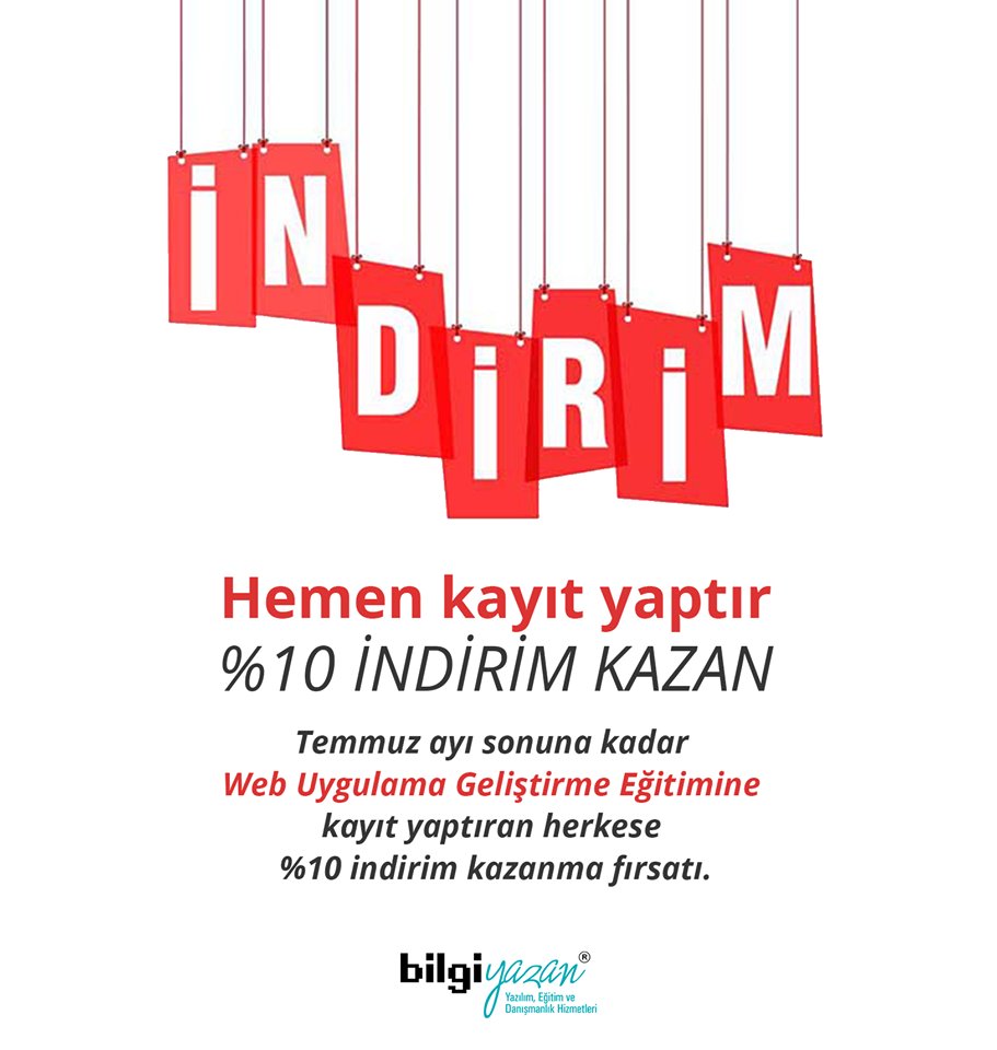 Siz de 31 Temmuz tarihine kadar Web Uygulama Geliştiricisi adlı paketimizi kaydınızı yaptırın,büyük indirim fırsatını kaçırmayın