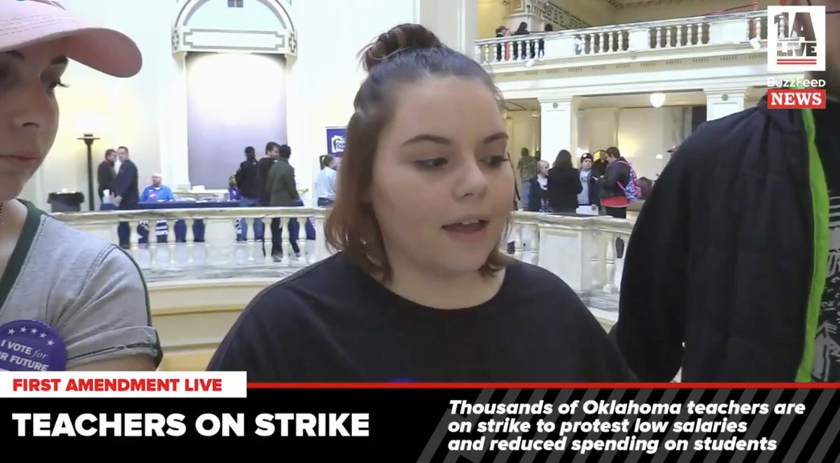 This student in Oklahoma says she would like five days of school a week. Budget cuts mean she only gets four. Live: https://www.pscp.tv/w/1yoKMkelMRXJQ pic.twitter.com/WfHI7PwZIm