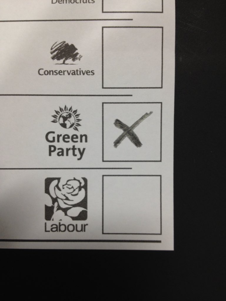 Tough call in a marginal but had to go with heart not head. Vote for what you believe in. #votegreen2017pic.twitter.com/rdBfco8NjZ