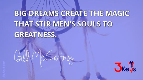 "Big dreams create the magic that stir men's souls to greatness." ~ Bill McCartney