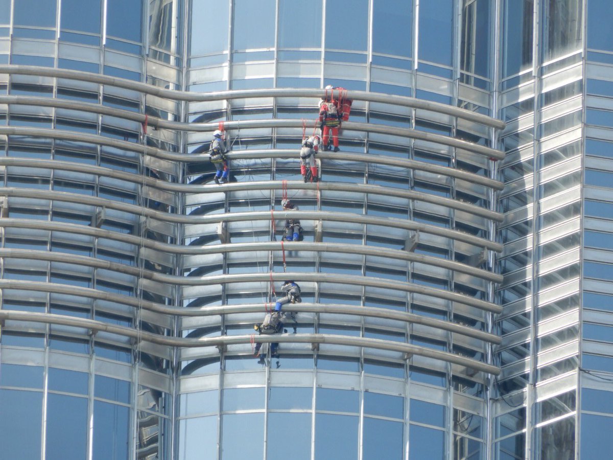 Usual window cleaning task on a tall (Burj Khalifa) building - but is it best for those guys?