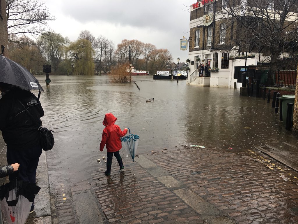 The Thames at Richmond today, the White Cross submerged just like in the pub sign...