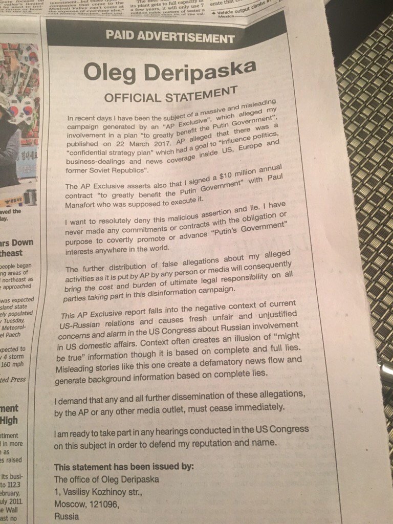 Fun to see Russian Oligarch demand that the free press "cease immediately" all "dissemination of these allegations"
