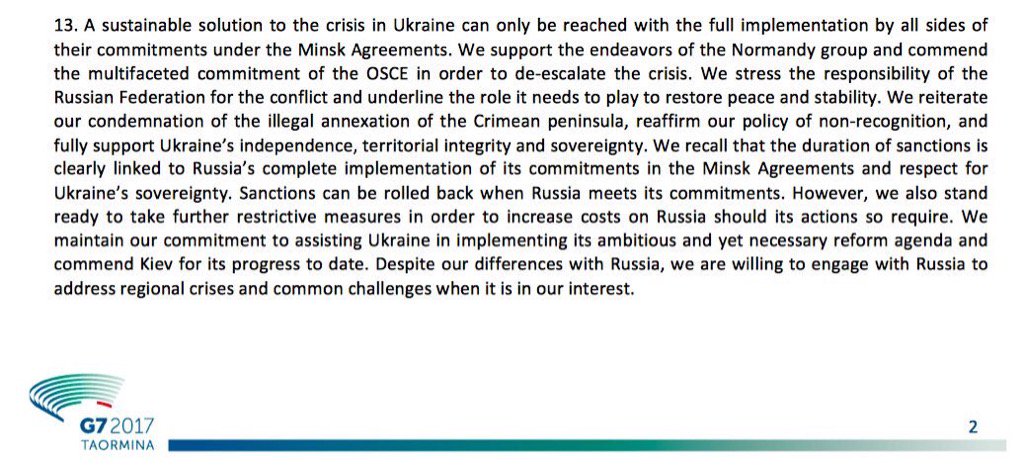 Excellent communique? Western resolve? Western words, no action; German led. Talk tough, do nothing. Wouldn't want to interrupt natural gas