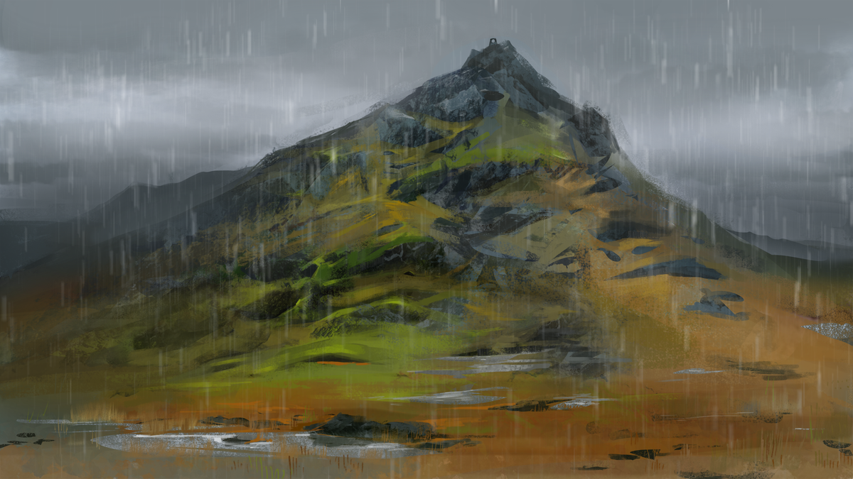 gloomy mountain sketch from the other day, trying out new brushes #conceptart #artpic.twitter.com/5mFuSJZeNa