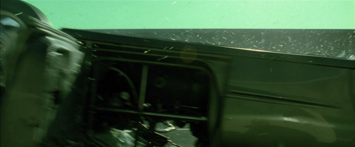 To this day I still think about this shot in The Matrix Reloaded. When the car flips they decided to do a slow motion close up of the car clearly empty and rigged to flip. It always takes me out of the moment. I can't stand it.pic.twitter.com/xMexJcW7qv