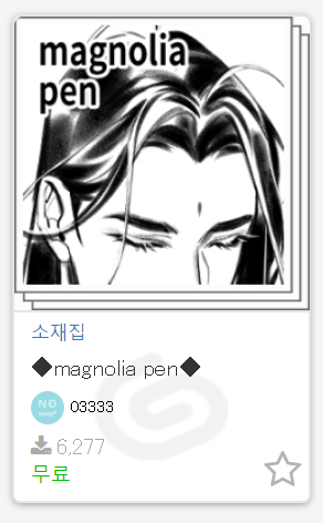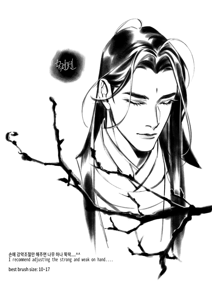 부드러운 수묵화 느낌의 브러쉬 소재입니다. 필압에 따라 강약조절이 되어서 한 사이즈로 많은 것을 그릴 수 있어요. 가장 좋은 크기는 10~17이라고 합니다.