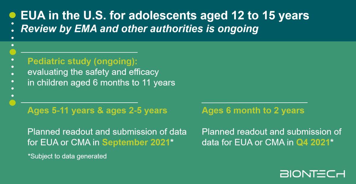 @EU_Commission expanded the conditional marketing authorization for our#COVID19 vaccine to incl. individuals 12-15rys of age. Our pediatric studies evaluating the safety & efficacy of our vaccine in children from the ages of 6mths - 11yrs are ongoing. https://investors.biontech.de/news-releases/news-release-details/pfizer-and-biontech-receive-first-authorization-european-union …pic.twitter.com/dkA81nLlYN