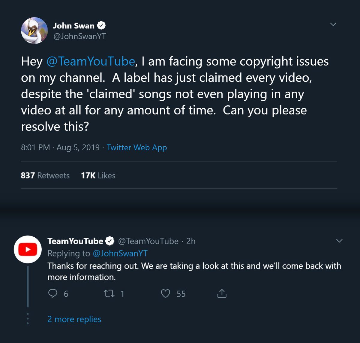 Getting replied to by @TeamYouTube is very exclusive.pic.twitter.com/qmSIAubrK8