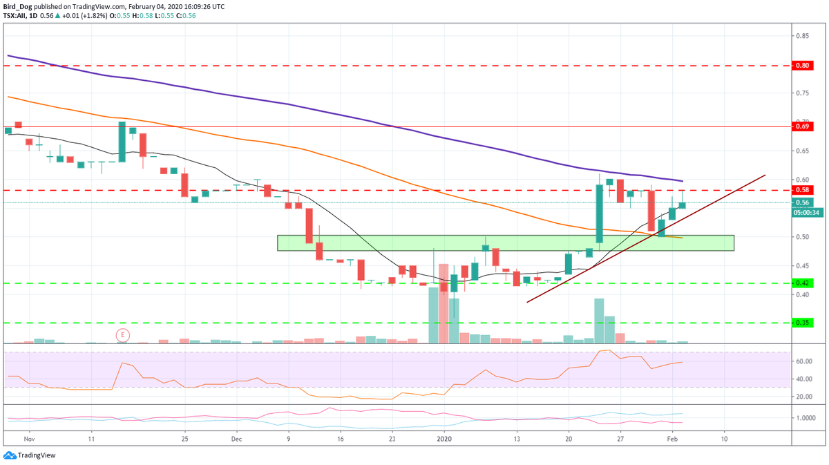 $AII Almonty Industries - Chart Update. Knockin' on the resistance door here. A push through .60 cents area would bring .69's imo. Looking good.$AII Daily.pic.twitter.com/ITCPfXAeki
