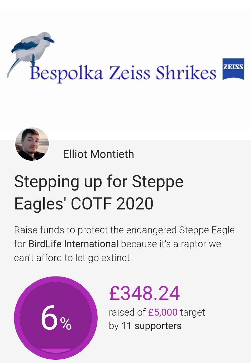as we compete in #COTF20 to raise funds to save the Steppe Eagle from extinction: https://www.justgiving.com/fundraising/BespolkaZeissShrikes?utm_campaign=lc_frp_share_transaction_fundraiser_page_launched&utm_content=e1578a6d-136d-4bc0-812a-561cf380213b&utm_medium=email&utm_source=postoffice&utm_term=1578707109018 …#ZeissBirdingpic.twitter.com/Dm2mmjVreQ