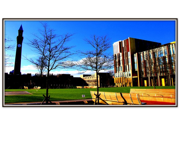 Peter gets it just right - blue sky, Green Heart and to cap it all wonderful modern & classic architecture - all at University of Birmingham - courtesy