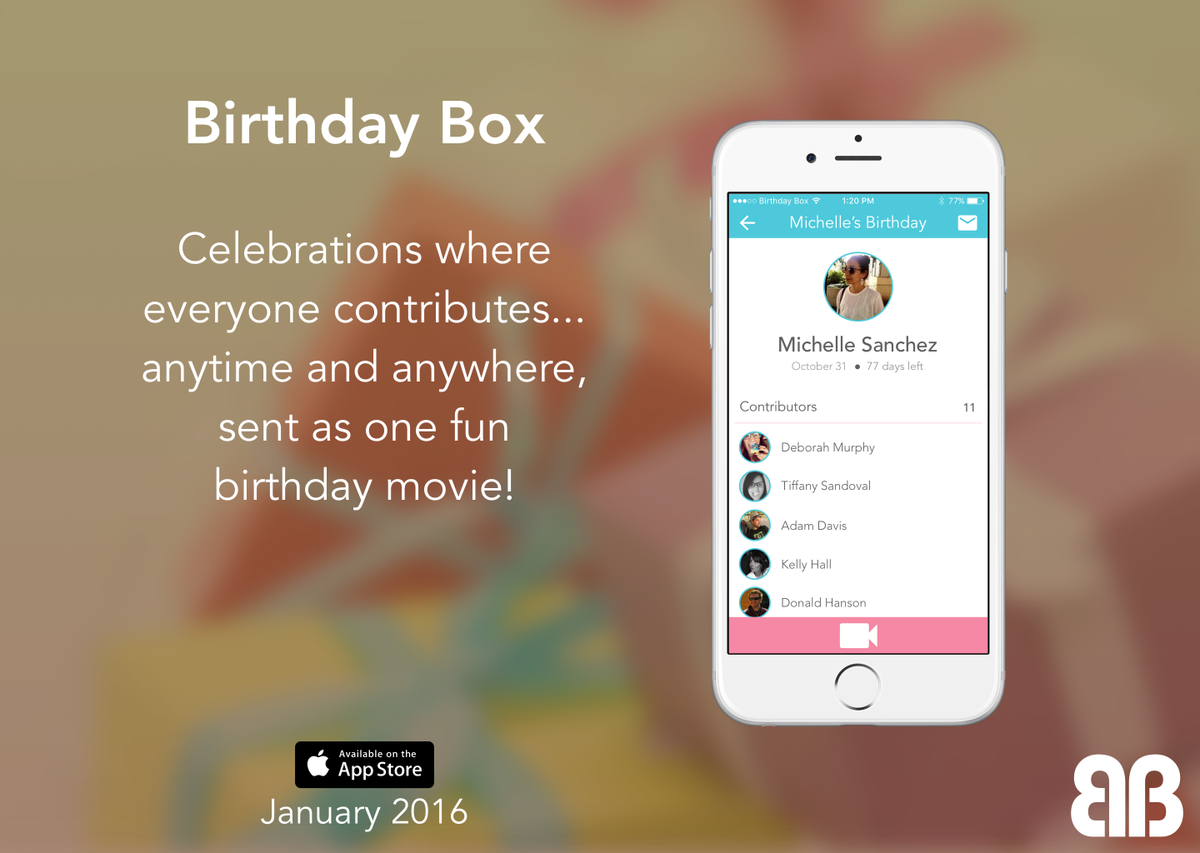 In January 2016, Birthday Box launches 1.0 on the App Store! http://BirthdayBox.info