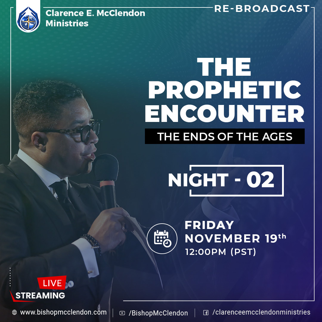 Our Partners Have Requested It AND We Are Delivering! Catch the Bonus Re- Broadcast of The Prophetic Encounter “THE ENDS OF THE AGES” Beginning TONIGHT with Night 1 at 7:30PM on ALL On-Line Platforms! - http://www.bishopmcclendon.com - The Bishop McClendon App - FaceBook and YouTubepic.twitter.com/nhakuD0UvU