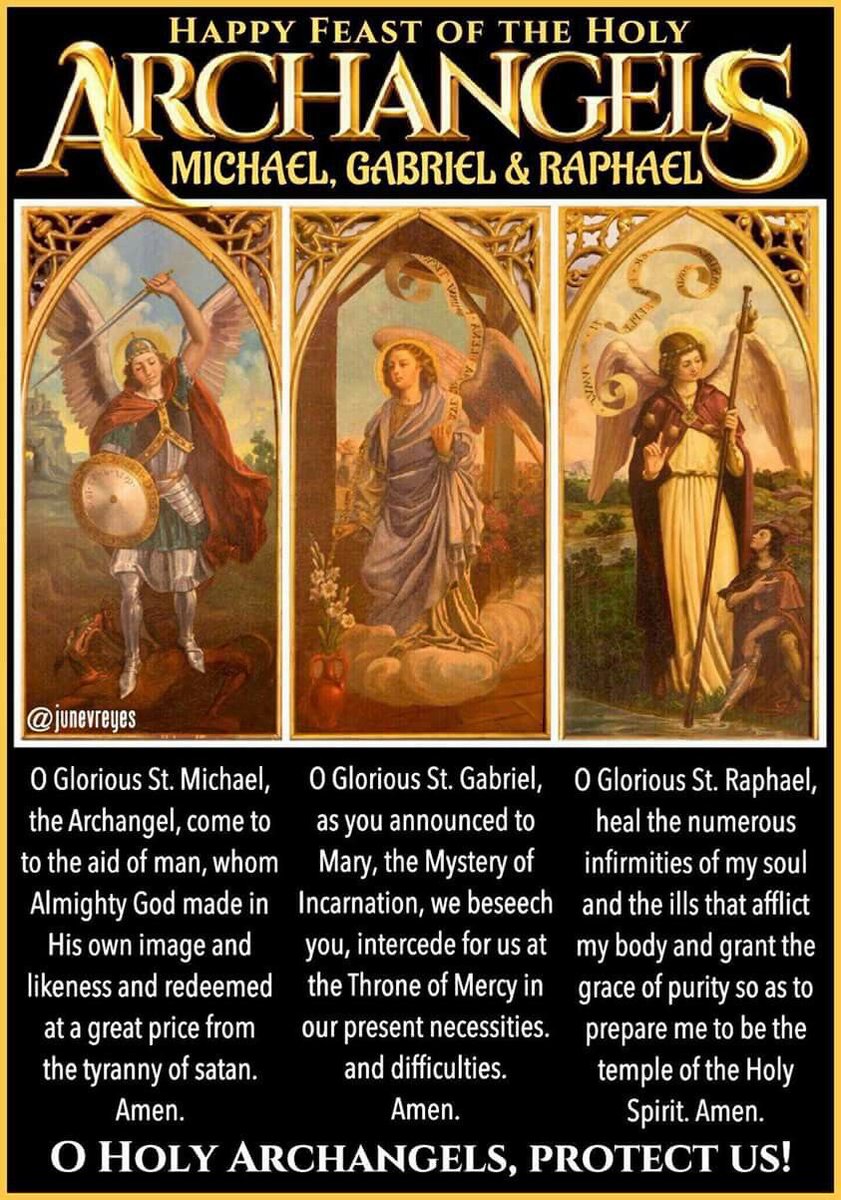 September 29, the Archangels are messengers of God’s love & grace for the world. They eternally worship God, Father, Son & Holy Spirit. Their greatest message is to announce Jesus Christ, Son of God & savior of the world JESUS IS THE WAY, THE TRUTH & THE LIFE!pic.twitter.com/PUDE544MQd