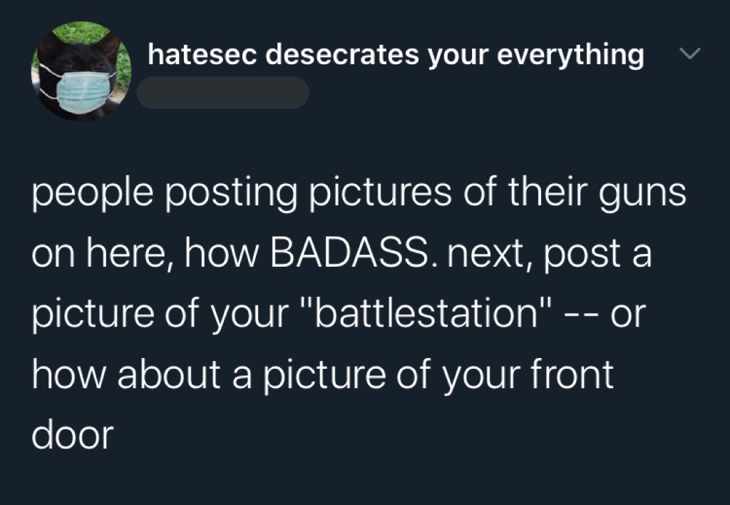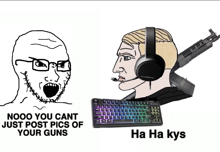 hot take time gun pictures, or just any picture with a weapon is cringe, not matter what or how they are posed it always comes of as "look how cool I am" and gives me vibes of fat weeb with katana posing