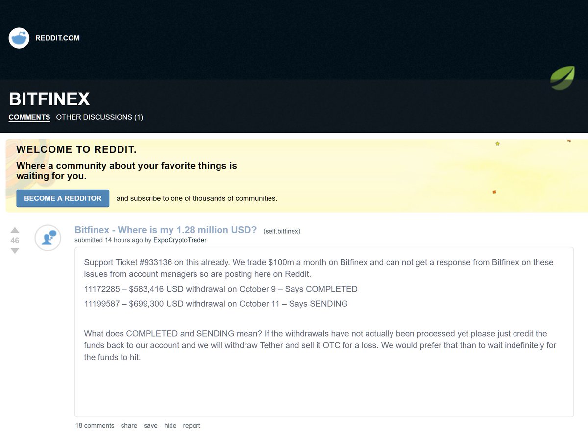 https://www.reddit.com/r/bitfinex/comments/9ovug1/bitfinex_where_is_my_128_million_usd/ …
