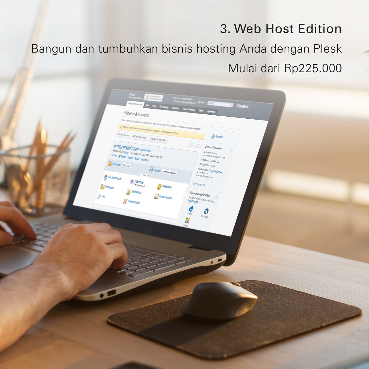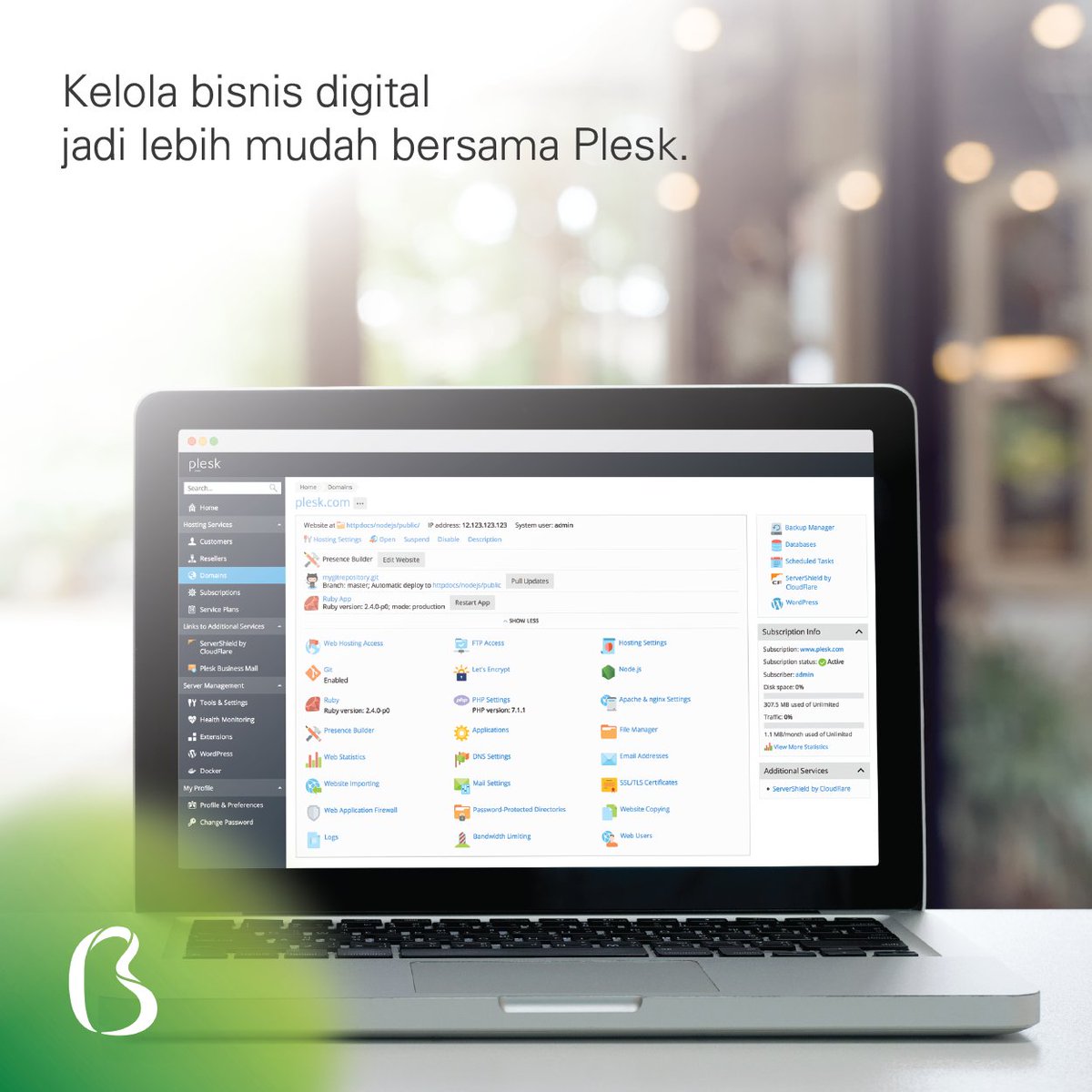 Plesk menyediakan semua kebutuhan untuk menjalankan bisnis digital Anda secara mudah dan aman di dalam satu hosting platform. Ingin mengetahui detail layanan Plesk klik: https://bit.ly/2y5O2PJ pic.twitter.com/L388pHuNYB