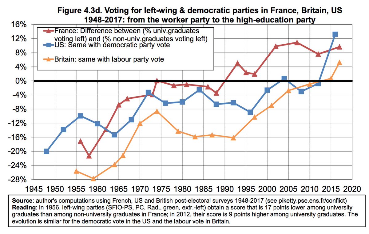 "The highly educated are increasingly voting to the left" You misspelled "indoctrinated."