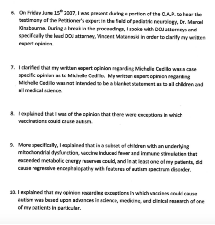 Even if these statistics are correct and there is a drop in the incidence of Autism in those Vaccinated it doesn't mean as Dr Zimmerman said in his affidavit that in "exceptional cases" of children with mitochondrial dysfunction the effect of a vaccine could cause Autism, right?pic.twitter.com/pJMOFvsyMZ