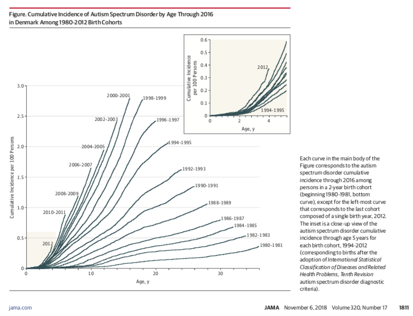 Interestingly, we diagnose more and more autism, here from Denmark Partly due to more early detection, but partly because of more attention https://jamanetwork.com/journals/jama/article-abstract/2712532 …pic.twitter.com/iglZtcKNnO