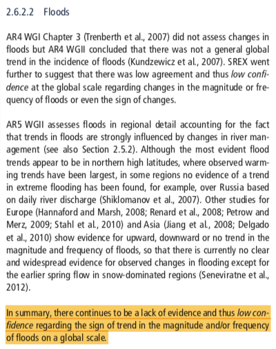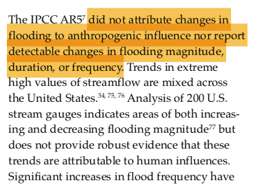 The quote from the US Climate assessment on the science tells us that the UN Climate Panel couldn't find a connection to flooding magnitude, duration or frequency, p240 https://science2017.globalchange.gov/downloads/CSSR2017_FullReport.pdf …pic.twitter.com/C6clLk6hIN