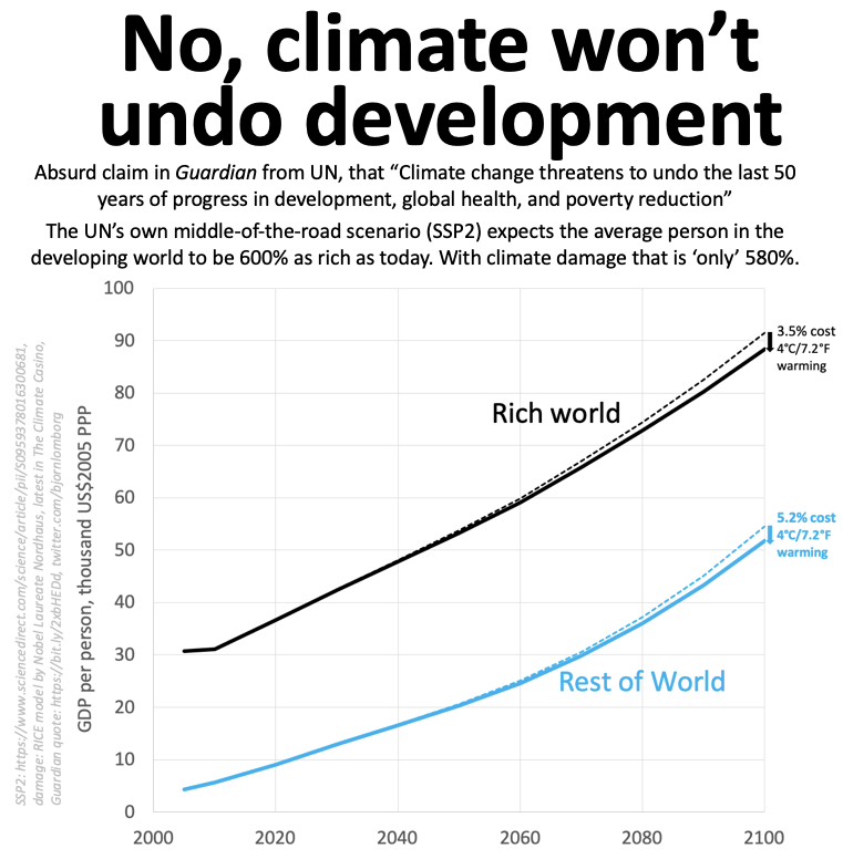 Absurd UN claims climate "undo last 50 years of progress" Eh, no. Just no In 2100, UN's own middle-of-road scenario has average developing person 600% as rich as today Deducting climate damage, that person will be 580% as rich https://www.theguardian.com/environment/2019/jun/25/climate-apartheid-united-nations-expert-says-human-rights-may-not-survive-crisis … https://www.sciencedirect.com/science/article/pii/S0959378016300681 …pic.twitter.com/tkTeicCIwj
