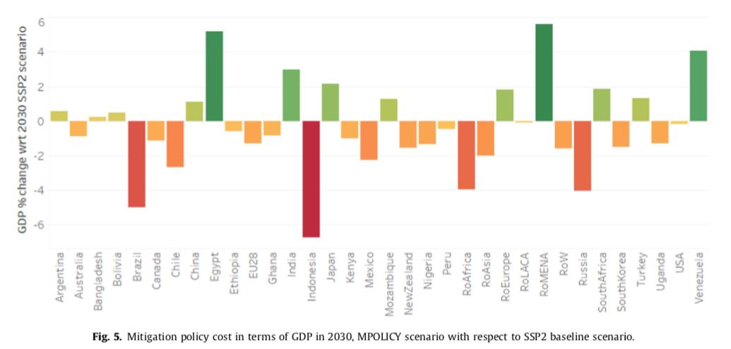 China & India will emit *more* under Paris bc leakage, and grow more Indonesia (-6.7% GDP), Brazil (-5%), Chile, Russia and Rest-of-Africa, whose targets are relatively more stringent, are projected to experience a substantial GDP loss to achieve their mitigation objectivespic.twitter.com/9wMkJBnLor