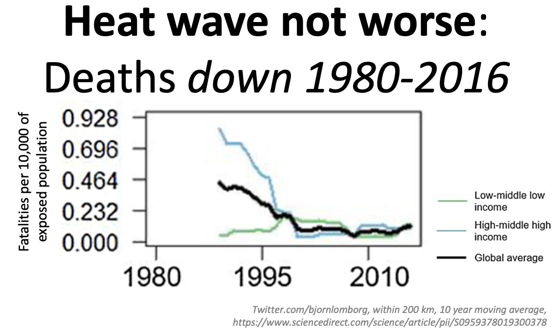 Extreme weather not killing more Each climate conference day, let's see the data Today heat deaths: Fewer people die from heat deaths, not more (because of higher wealth and resilience) From this new peer-reviewed article: https://sciencedirect.com/science/article/pii/S0959378019300378?via%3Dihub …pic.twitter.com/6374iSL59H