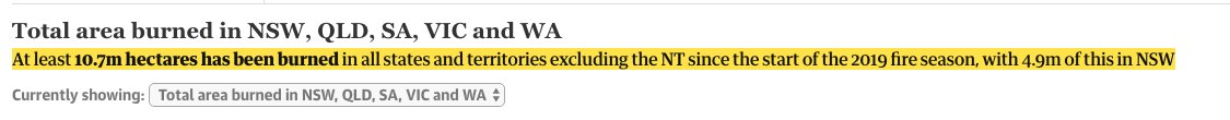 Sorry, you can't just say "google it" and conclude data is complete BS Is the burnt area in Australia minus NT 10.7Mha Jun1-jan6? https://www.theguardian.com/australia-news/datablog/ng-interactive/2019/dec/07/how-big-are-the-fires-burning-on-the-east-coast-of-australia-interactive-map … Is the satellite data Jun1-Dec31 correct? http://www.globalfiredata.org/analysis.html  If neither is wrong, your claim is wrongpic.twitter.com/CkGkOmLVAa